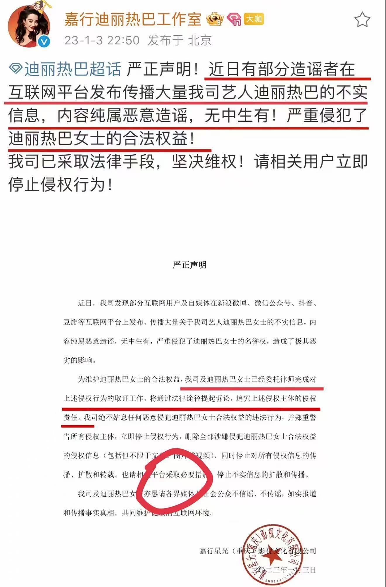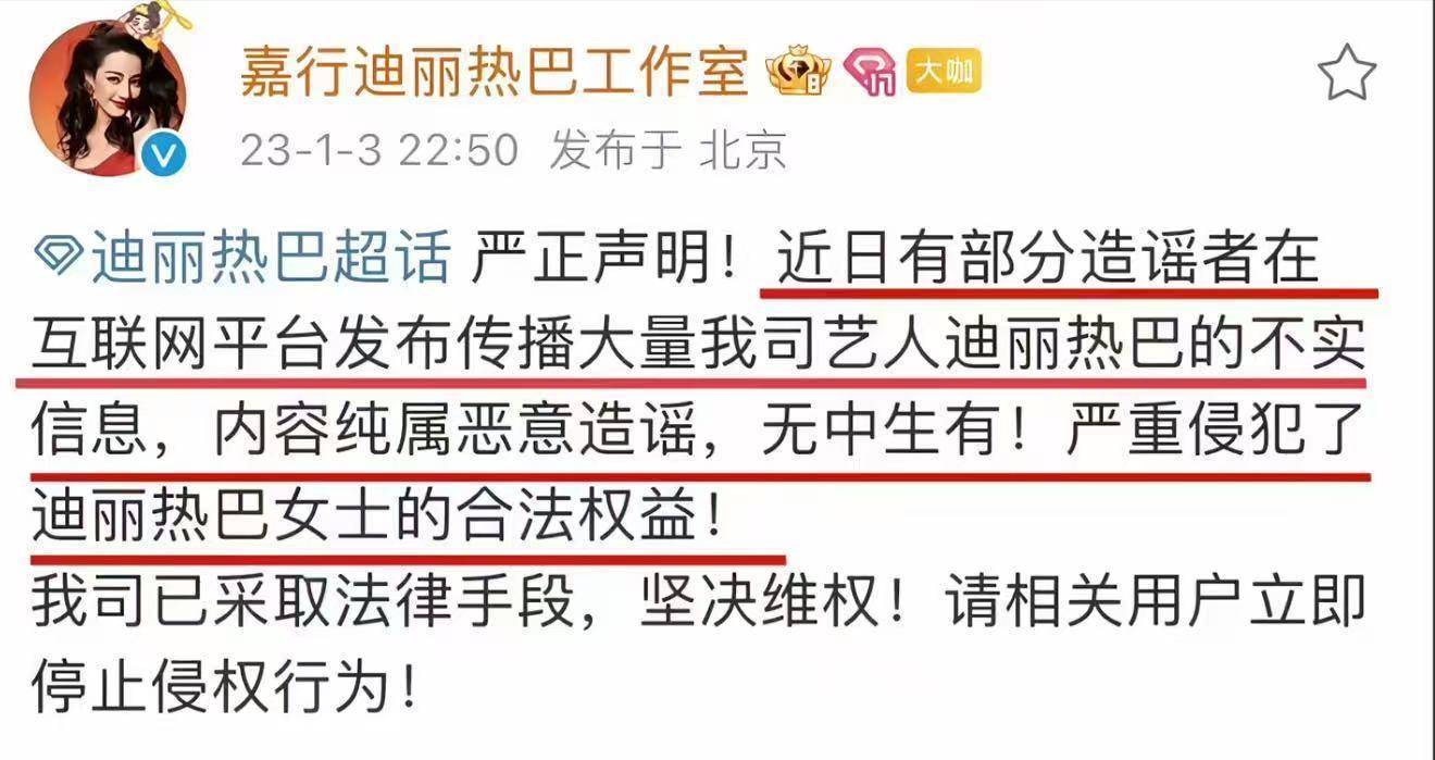 向下扎根2023年1月,迪丽热巴工作室发布了一则辟谣声明,将那些绯闻彻底定性成“不实消息”。