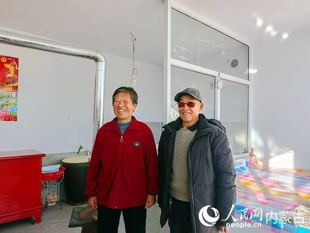 丰镇市三义泉镇海流素太村村民田二毛和妻子岳玉娥喜迁新居。人民网记者 刘艺琳摄
