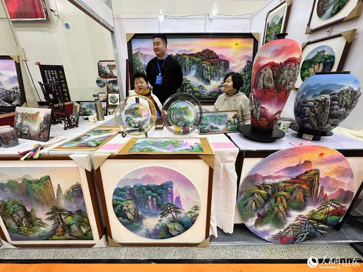 展会上的泰山宝石画作品。人民网记者 乔姝摄