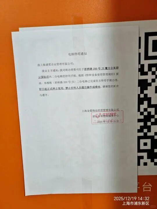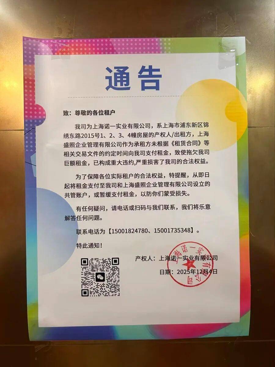 12月29日,魔方公寓(碧云国际店)大门紧闭,门口堆满垃圾,但屋内灯还亮着。押金回收也成了一件难事。刘女士告诉记者,她12月19日申请退租,直至12月29日,押金仍未到账。“联系不上管家,也收不到押金”成为退租过程中的一种“常态”,租客们的处境十分被动。不签新合约将被“停水停电”在关停的魔方公寓中,除了像碧云国际店这样强制“清退”的,还有部分公寓由产权方(即俗称的“大房东”)接手,租客可与大房东重新续约。但记者注意到,在实际交接过程中,由于大房东接手突然,加之合同变更等问题,租客与大房东之间矛盾重重,魔方公寓(锦绣东路店)就是其中之一。2025年12月4日,魔方公寓(锦绣东路店)的租客们发现,自己居住的楼栋各处都贴上了产权方发布的通告,产权方“上海诺一实业有限公司”(后简称“诺一”)入驻公寓前台,声称开始接管公寓。